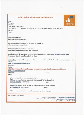Vous trouverez dans la boîte à documents du site internet, sur Ecole en ligne et sur ITSLEARNING, un répertoire des lieux accessibles aux élèves pour un enseignement à distance.
